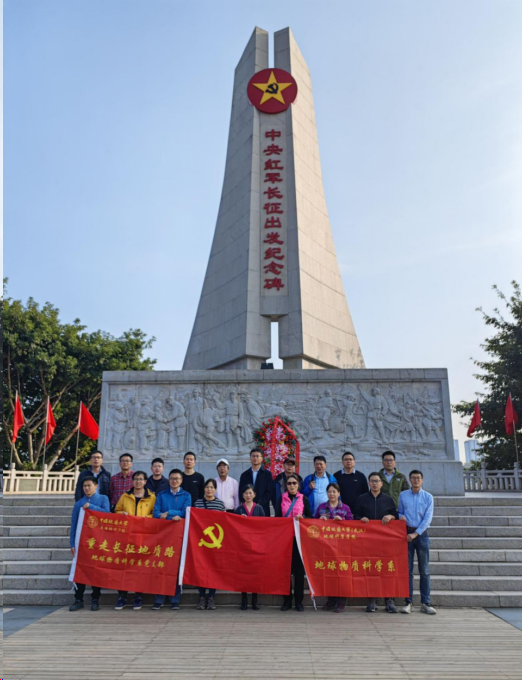 1934年10月,中央红军约8.6万人集结于江西省于都县,开始了伟大的二万五千里长征。在风雨如磐的长征路上,红军战士翻越18座大山,跨越24条大河,历经14个省份,最终会师于甘肃会宁地区。为了进一步弘扬长征精神,传承地质报国情怀,betway官网 地球物质科学系教师从中央红军长征集结出发地——江西于都开启了“重走长征地质路”系列党建活动。