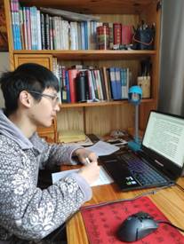 图2龚一鸣老师在给010181班等betway官网 的学生上《地史学》网课,20200228于武汉