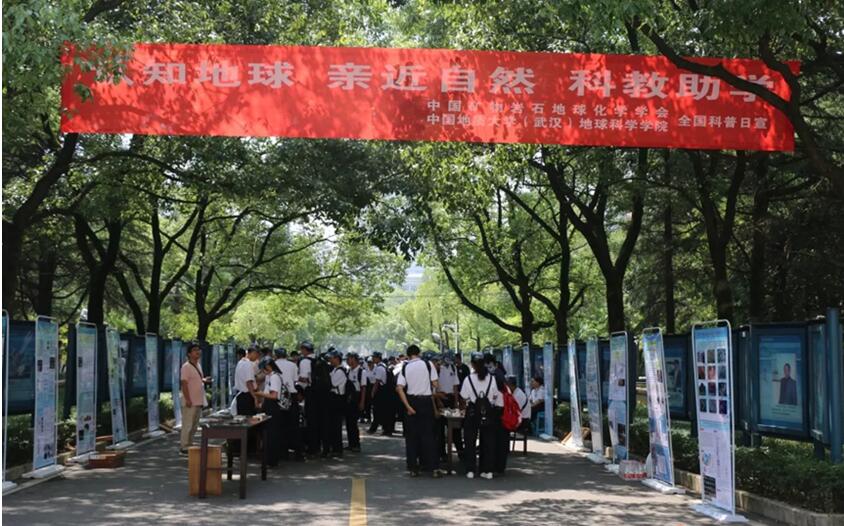 校内的科普展览在中国地质大学(武汉)院士长廊举行。展览吸引了很多2018级新生,许多市民朋友和外国友人也兴致颇浓,细致观察,不时提问。