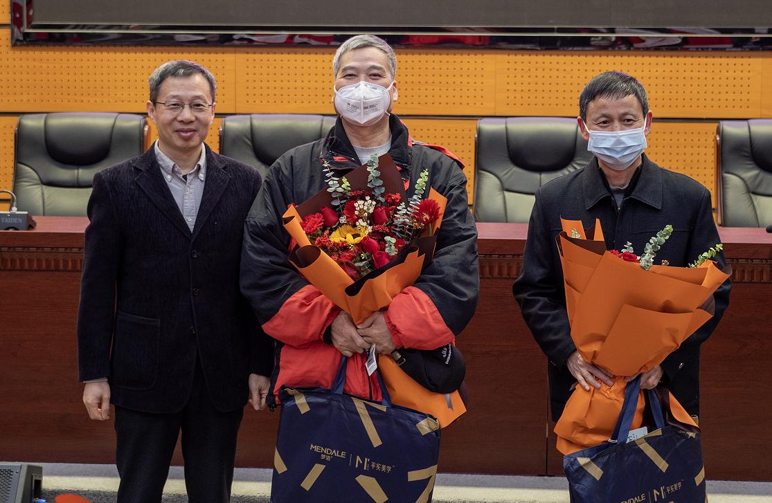 章军锋院长为2021年荣休老师送鲜花和颁发纪念品