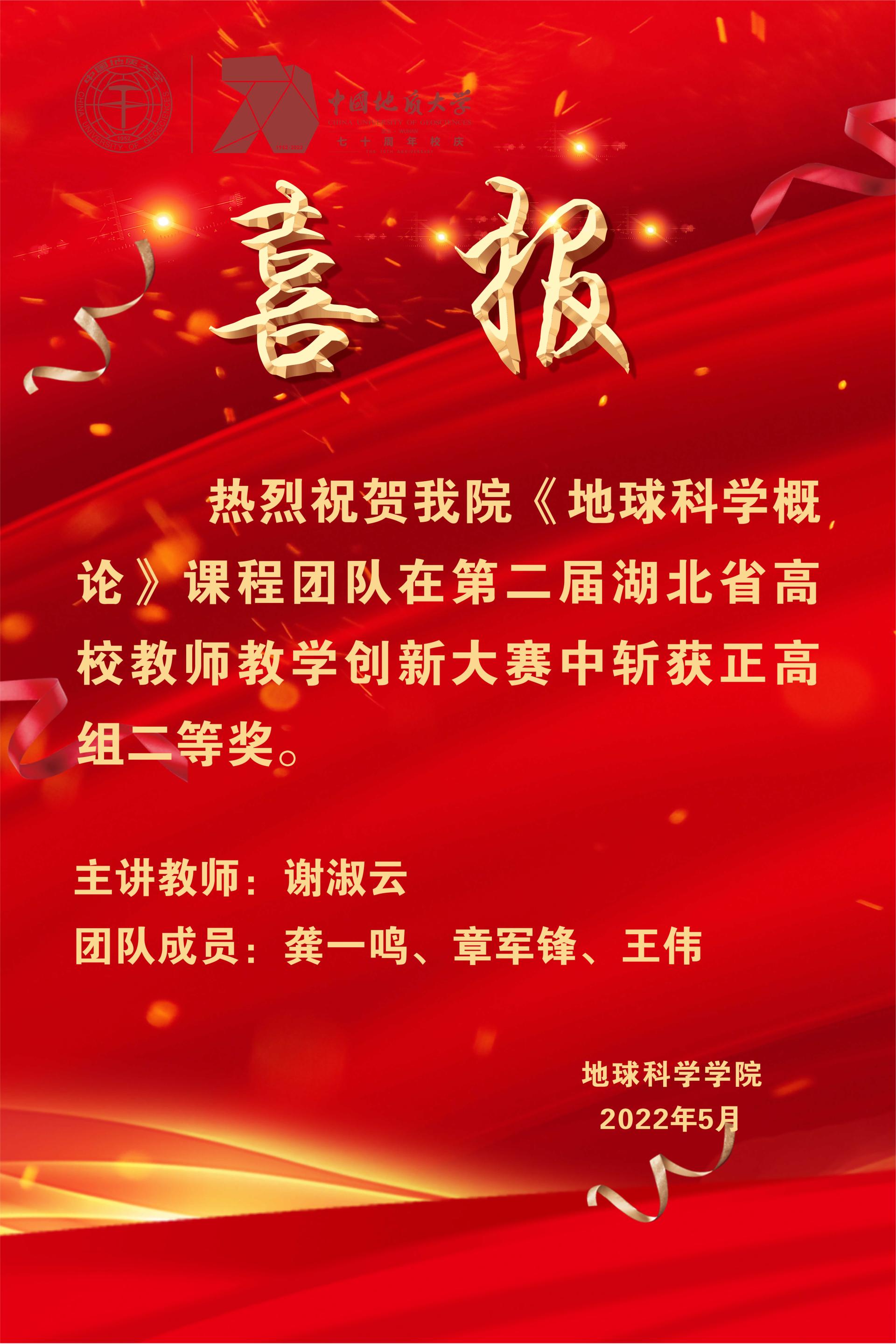 我院《地球科学概论》课程团队在5月14-15日举行的“第二届湖北省高校教师教学创新大赛”中荣获正高组二等奖。