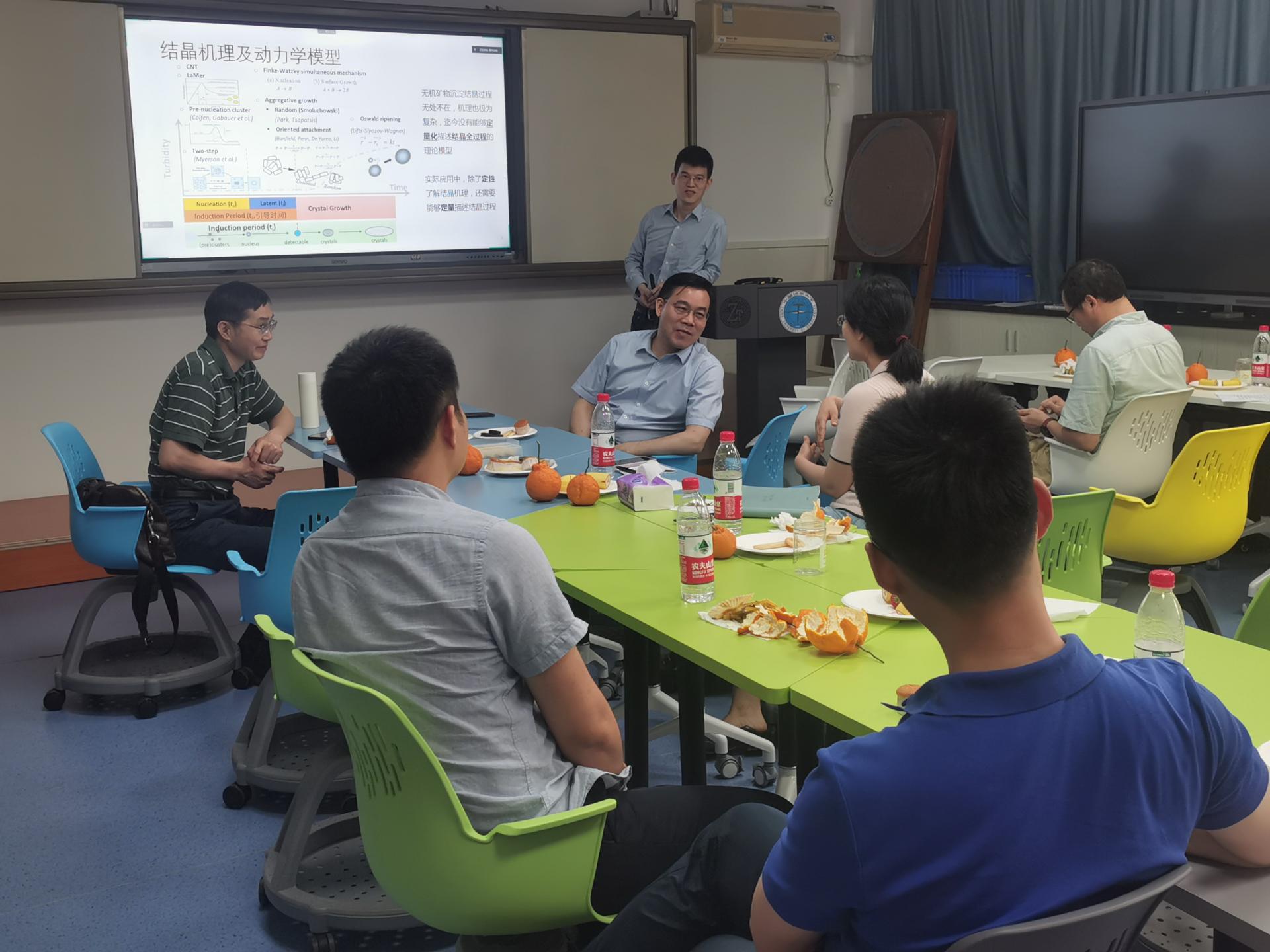 朱峰教授和戴兆毅教授分别以“Fe-Ni-C熔体的高温高压物理性质研究及类地星球核中碳元素的探讨”和“晶体结晶与调控的机理研究及其工业应用”为主题做报告,分享各自在研究中取得的进展,也提出了遇到的瓶颈问题,希望在沙龙交流活动中得到启发。