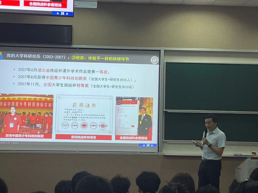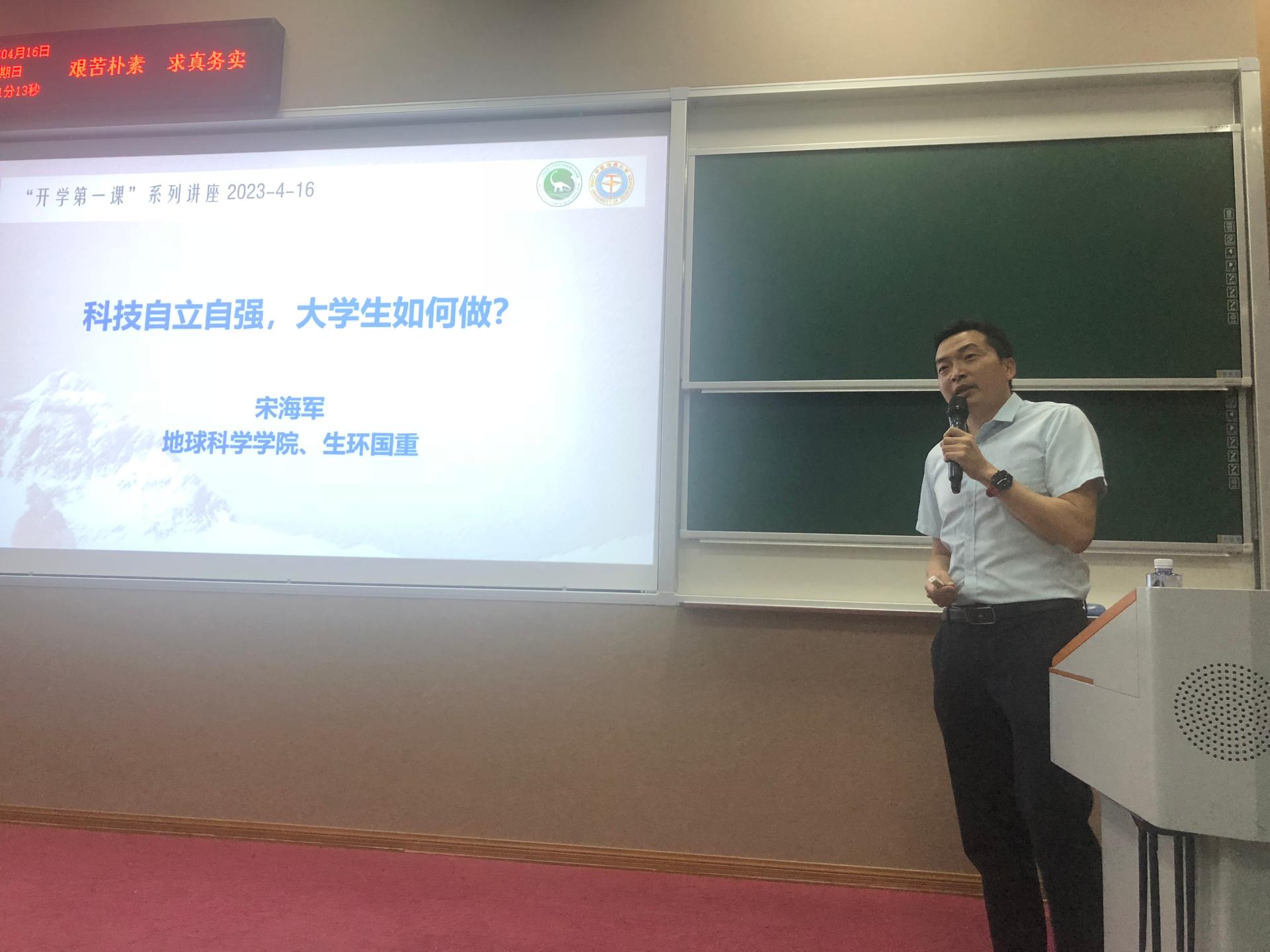 4月16日晚,第十七届“中国青年科技奖特别奖”获得者、betway官网 地球生物学系教授、生物地质与环境地质国家重点实验室副主任,“挑战杯”大学生课外学术科技竞赛优秀指导老师宋海军教授以“科技自立自强,大学生该如何做”为题,为我院2022级本科生带来了一场精彩的主题报告。