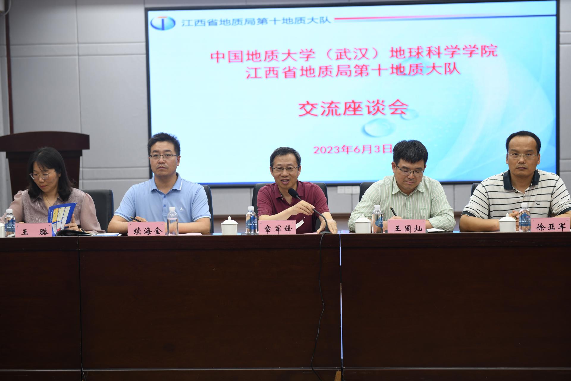章军锋院长感谢第十地质大队对代表团此次考察调研的支持,并介绍了betway官网 的基本情况和地质学学科的发展状况和学科优势。希望双方在科学研究、人才培养、党建等方面开展全方位合作,携手打造高校与生产单位合作的新典范,开创资源共享、互利共赢的新局面。王国灿教授介绍了中国地质大学(武汉)地质调查研究院的主要业务范围和优势,表示双方在矿产勘查、水文地质和环境地质等方面存在广泛的合作前景。