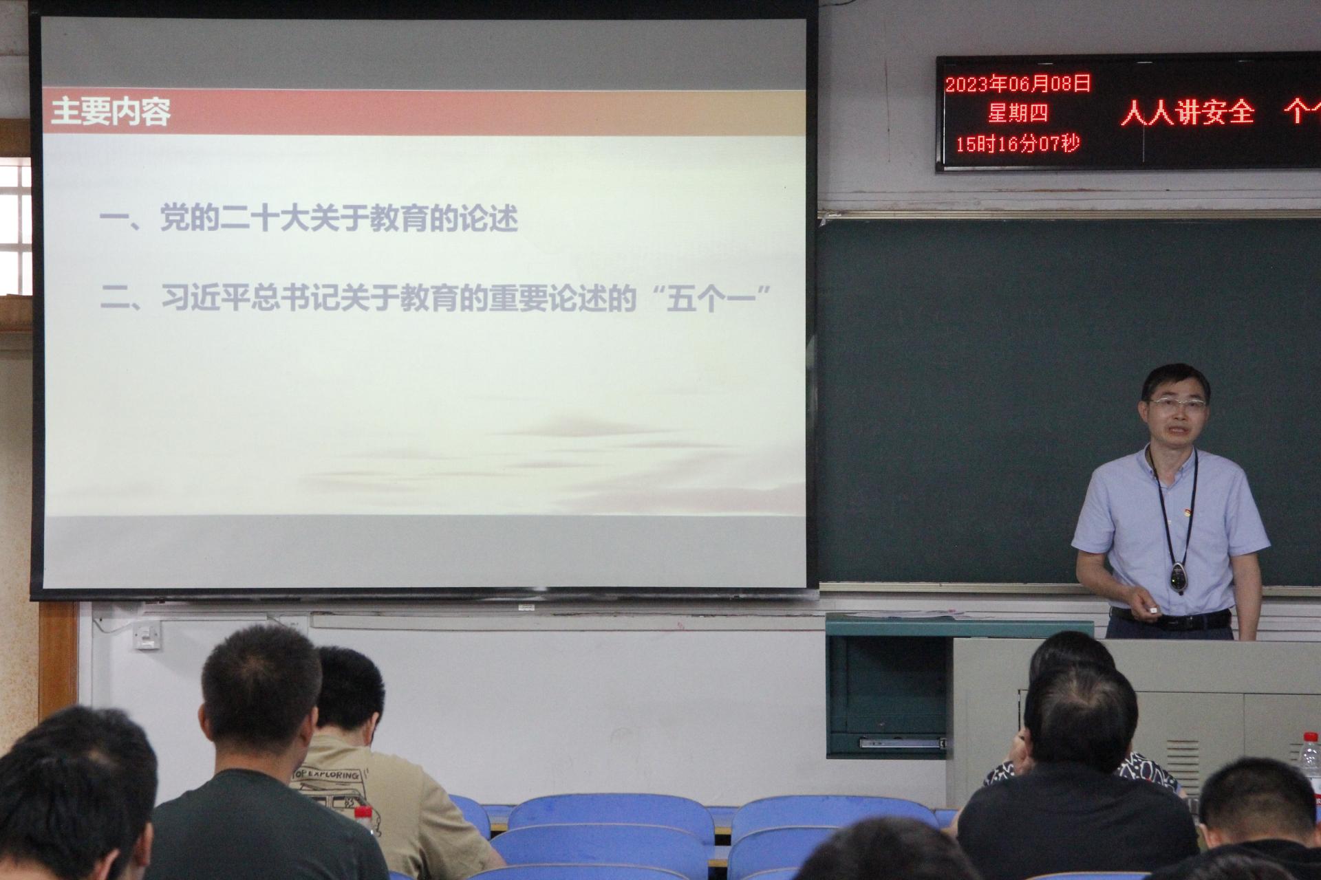会上,周刚介绍了betway官网 党委主题教育工作进展情况、特色亮点、存在不足及下一步工作举措。周刚指出,主题教育是betway官网 党委当前和今后一个时期的重要政治任务,要牢牢把握主题教育总要求、根本任务和具体目标,结合betway官网 工作实际推动主题教育走深走实。周刚还带领全体党员学习领会了习近平总书记关于教育的重要论述,希望全体教师牢记总书记嘱托,做新时代好教师。