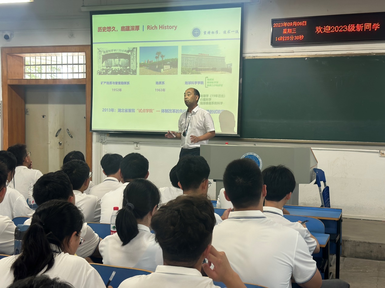 “坚持标准,就是要坚持人才强院、学术标准、国际化办学和有组织地推动发展,追求一流,就是要追求一流教育、一流人才、一流科学研究和一流国际合作。”课堂上,吴元保院长首先对betway官网 “坚持标准,追求一流”的理念进行了解读。他回顾了betway官网 悠久的建院历史与深厚底蕴,并依次介绍了betway官网 各系所和科研平台设置情况,学科发展情况以及教职工和学生组成情况等,充分展现了betway官网 丰富的名师资源和突出的平台优势,帮助新生们充分了解betway官网 的基本情况。betway官网 实力雄厚的科研和教学团队、现代化的教学和科研设备、设施完善的野外实践基地和实验教学示范中心等,都给新生们留下了深刻的印象。