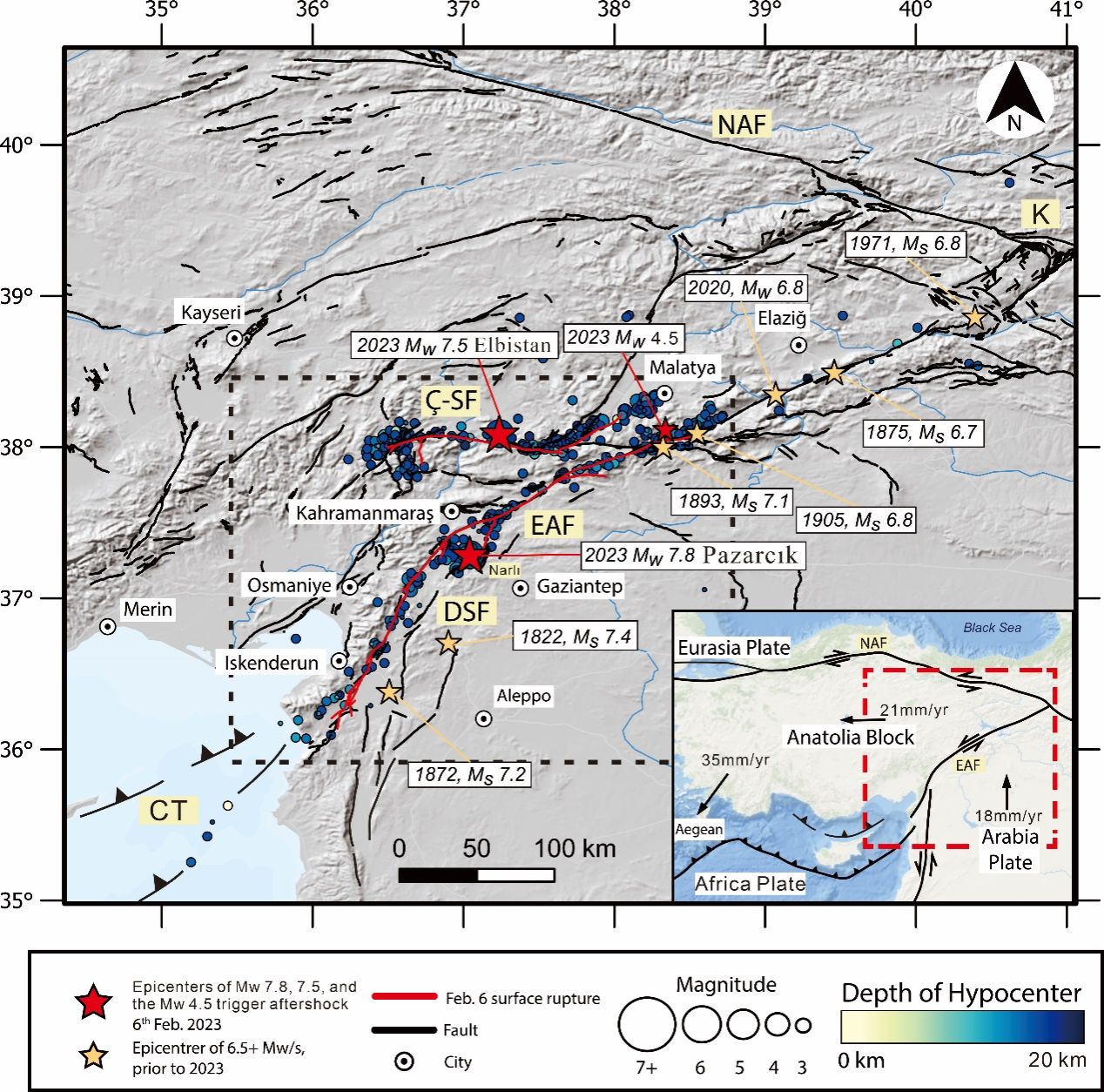 2023年2月6日的土耳其东部大地震,是该区本世纪以来破坏性最大的地震事件,共造成59,259人死亡,1,488亿美元损失(土耳其GDP的9%)。中国地质大学betway官网 、地质过程与矿产资源国家重点实验室和湖北巴东地质灾害国家野外科学观测研究站Timothy Kusky教授研究团队在国家自然科学基金委“特提斯地球动力系统”重大研究计划重点项目“大陆碰撞侧向逃逸和初始板块边界的形成”支持下,自2017年开始在土耳其开展新构造和大地构造演化研究。该研究计划也是中国国家自然科学基金委第一个系统性鼓励中国科学家走出国门、在境外开展研究,彰显中国研究实力和国际视野的重大研究计划项目。