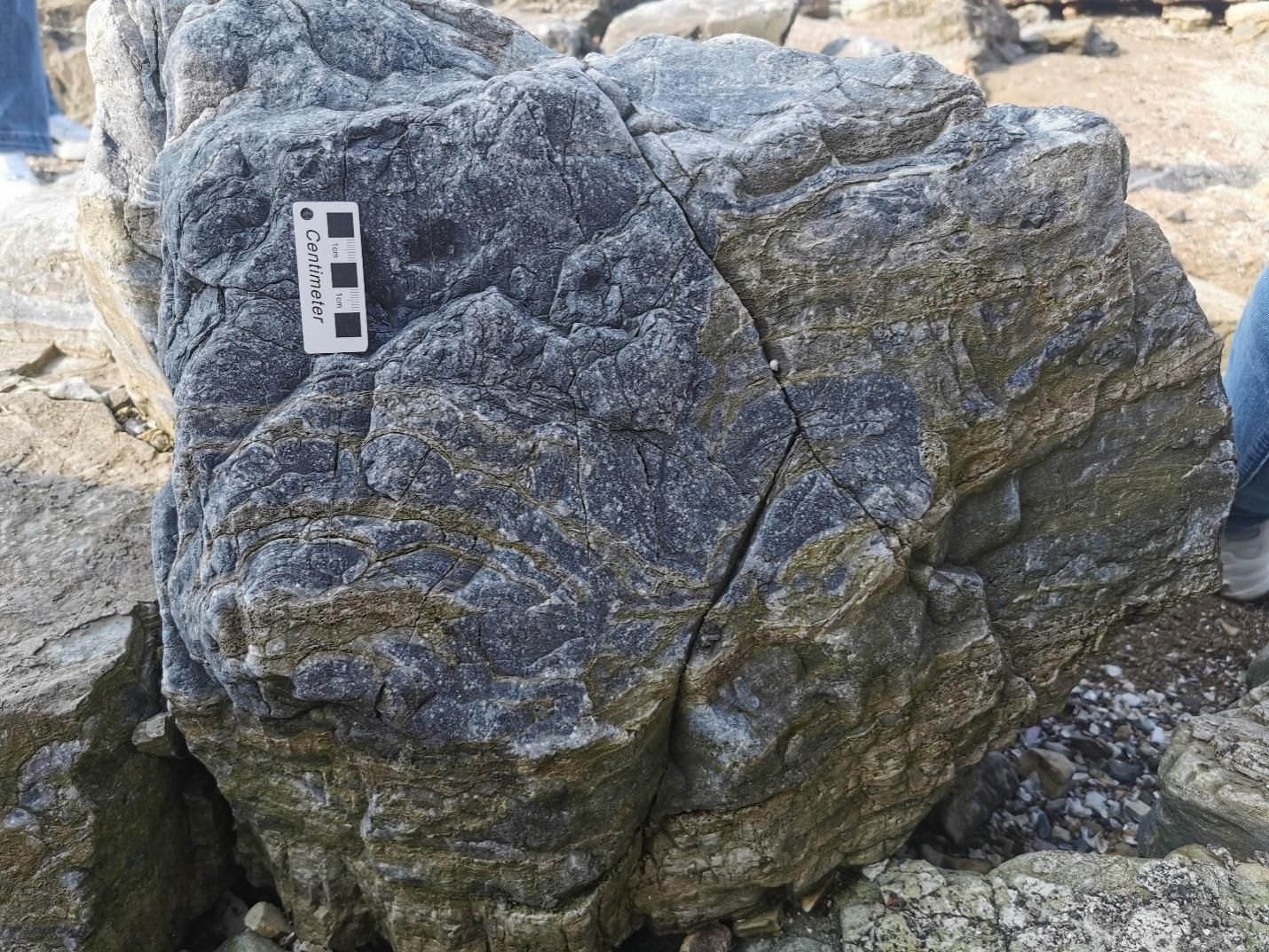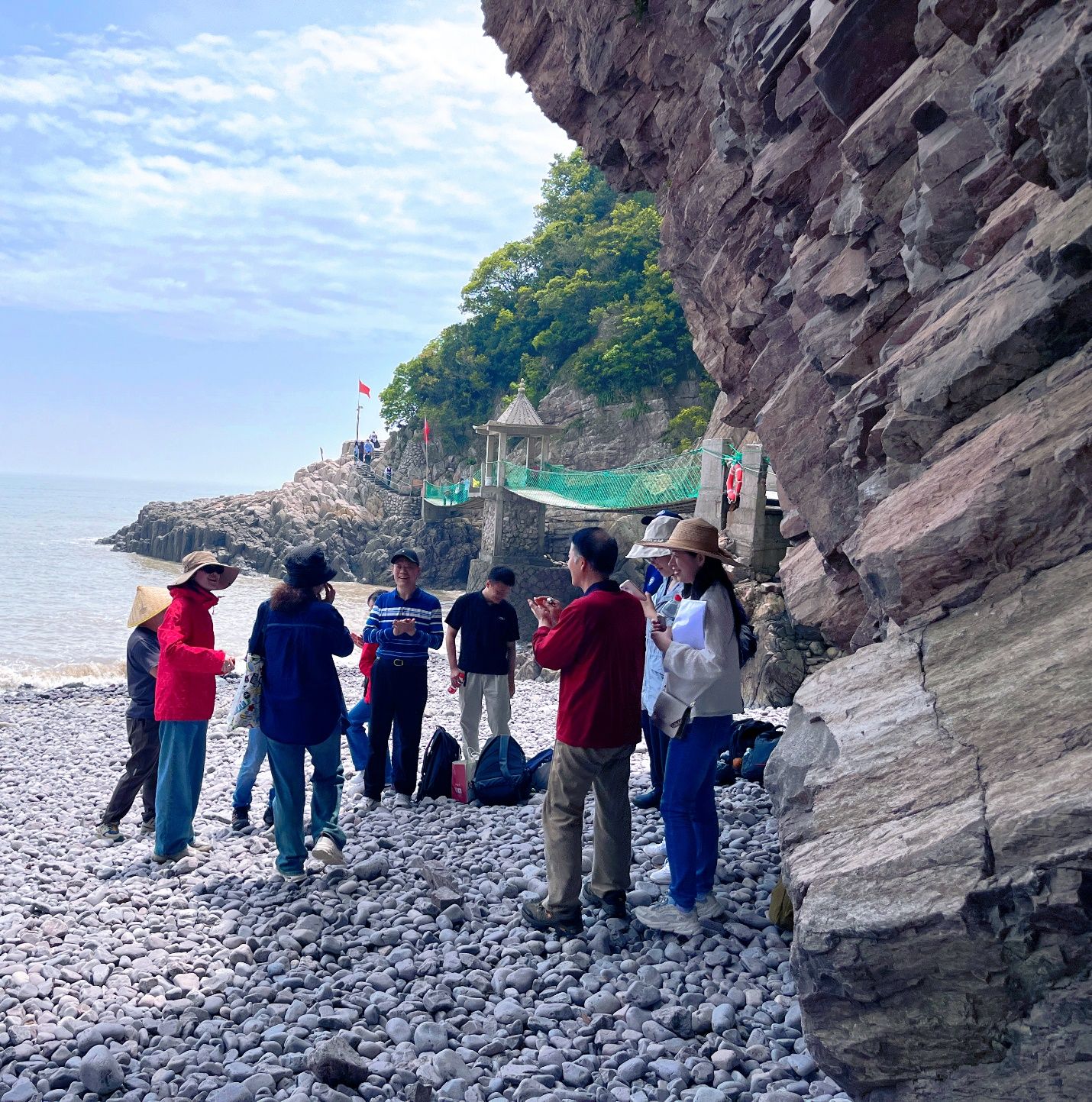 4月20日下午,老师们观察了石浦灰岩地层剖面,该剖面是地质学界长期探索的科研迷地,海相灰岩产出的独特地质环境,为深入了解海陆过渡相扇三角洲和潮坪—泻湖亚相的形成机制提供了绝佳场所。碎屑岩夹层中保存的含叠层石等礁灰岩层,更是对古生物学有着重要探索价值。