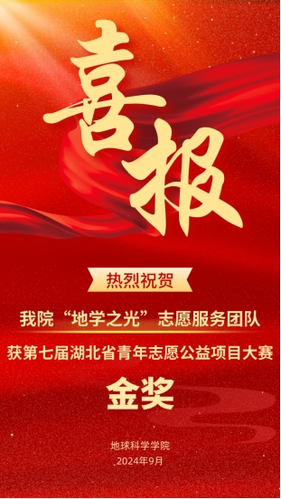 近日,第七届湖北省青年志愿公益项目大赛决赛在武汉工程大学圆满帷幕,经过激烈角逐,我院“地学之光·党员科普理论宣讲团”负责的项目“地学之光——点燃科普之灯,照亮未来之路”从入围决赛的93个项目团队中脱颖而出,获得大赛金奖。