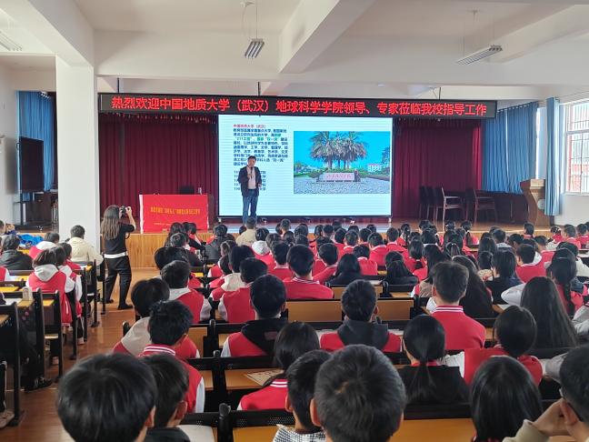 11月21日,我院“地学之光”科普讲解队走进云南省楚雄龙江中学,与中国地质大学(武汉)第26届研究生支教团联合举办“把地球故事讲给你听”系列科普活动,旨在大力宣传弘扬科学家精神,引导广大中学生树立远大理想。中国地质大学(武汉)betway官网 教授马昌前、betway官网 党委副书记赵得爱、betway官网 “地学之光”科普讲解队成员姜昕、李槟馨、罗明辉、李月如参加本次活动。