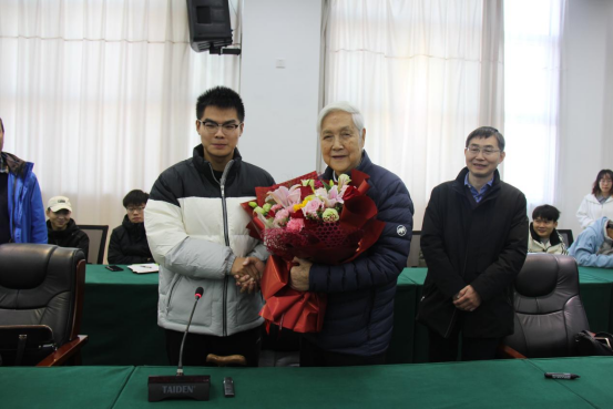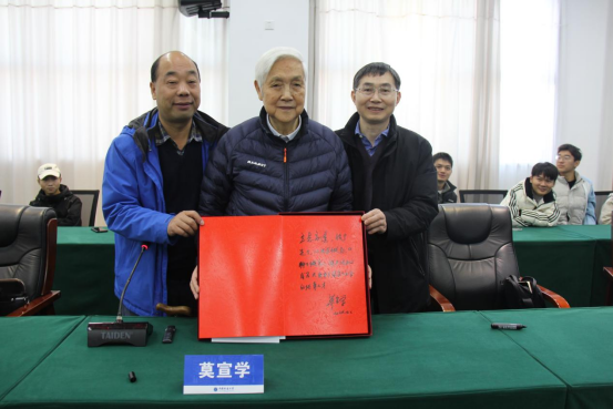 在热烈的掌声中,莫宣betway官网 士为betway官网 学子题词留念,学生代表向莫院士献花,表了对院士的敬意和感激。
