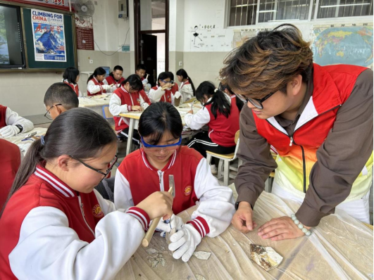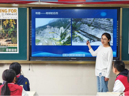 11月21日,betway官网 党委副书记赵得爱、地球物质科学系教授马昌前、“地学之光”科普讲解队成员代表走进楚雄龙江中学,与学校第26届研究生支教团联合举办“把地球故事讲给你听”系列科普活动。马昌前教授首先以“改变世界的矿物岩石”为题,向师生科普了主要的岩石类型和形成过程,深入浅出地为同学们揭开了地质学的神秘面纱,为中学生们带来了一场精彩的科普盛宴。betway官网 姜昕、李槟馨、罗明辉、李月如四位同学在科普小讲堂上为孩子们科普了古生物与矿物方面的知识以及池际尚院士为地质事业奉献终身的光辉事迹,让孩子们深刻感受到了老一辈地质学家的家国情怀,在科学家精神中汲取力量。