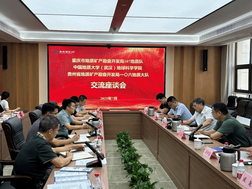 在205地质队,队党委书记张天贵、队长邝光升、队党委委员谢桃园、科创中心主任闫慧、生态地质研究院院长蒲刚、副院长兼总工程师齐小兵等参加座谈会,与会人员观看了地质队宣传片,队长邝光升介绍了在矿产地质、地质灾害防治、生态修复等方面取得的突出成果和成果转化情况,党委书记张天贵介绍了单位技术人才情况和毕业生招聘和人才计划情况,表达了与betway官网 在产学研方面深化合作的期望,王连训教授介绍了前期与队里的项目合作情况与取得的成果等。在107地质队,队党委书记易宗旺、队长程礼军、首席专家唐将、地质矿产研究院院长勾杰、院总工程师牟佳佳、AI地矿研究院负责人李珂及部分校友等参加座谈会,会前队长程礼军带领大家参观了队史馆,介绍了107地质队的发展历程与取得的突出成果,座谈会上唐将与程礼军分别介绍了科技创新、找矿成果以及在实际生产中未来突破方向和合作需求,党委书记易宗旺回顾了两个月前在武汉座谈交流中达成的合作共识并表示进一步加强交流加快合作,贵州地矿局106地质队首席专家翁申富结合地质e站建设分享了对沉积型矿产勘查方面的经验,余文超教授介绍了与贵州地矿局106地质队在找矿方面的合作情况和通过与107队项目合作对重庆沉积型矿床的认识等。各单位与会人员结合自己的工作岗位和业务情况进行了充分交流。在观看学校宣传片《奋进》的基础上,刘世勇介绍了学校及betway官网 的整体情况以及betway官网 的科研优势与特色,并表示希望以此次交流为契机,推动双方在人才培养与就业、科研项目联合攻关,科研平台开放共享等方面深入合作,共同推进教育、科技、人才一体化建设,座谈会结束后,分别与两个单位签署了产学研合作协议,并举行了“地质e站”揭牌仪式。