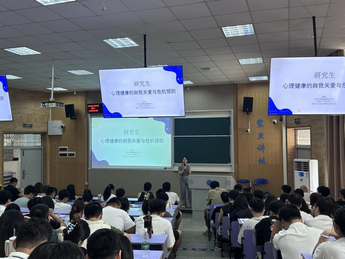 9月8日,学校心理健康中心杨琴老师为研究生新生带来了一场主题为“心理健康的自我关爱与危机预防”的心理健康专题讲座。杨琴老师从研究生的心理适应、心理健康与自我关爱、导学沟通技能提升、心理危机预防措施四方面入手,科学分析了科研压力、人际适应、生涯规划等因素可能带来的情绪波动。她特别鼓励同学们正视压力,培养成长型思维,将挑战视为进步的阶梯,为同学们保持积极乐观、情绪稳定的科研状态注入了“心”能量。