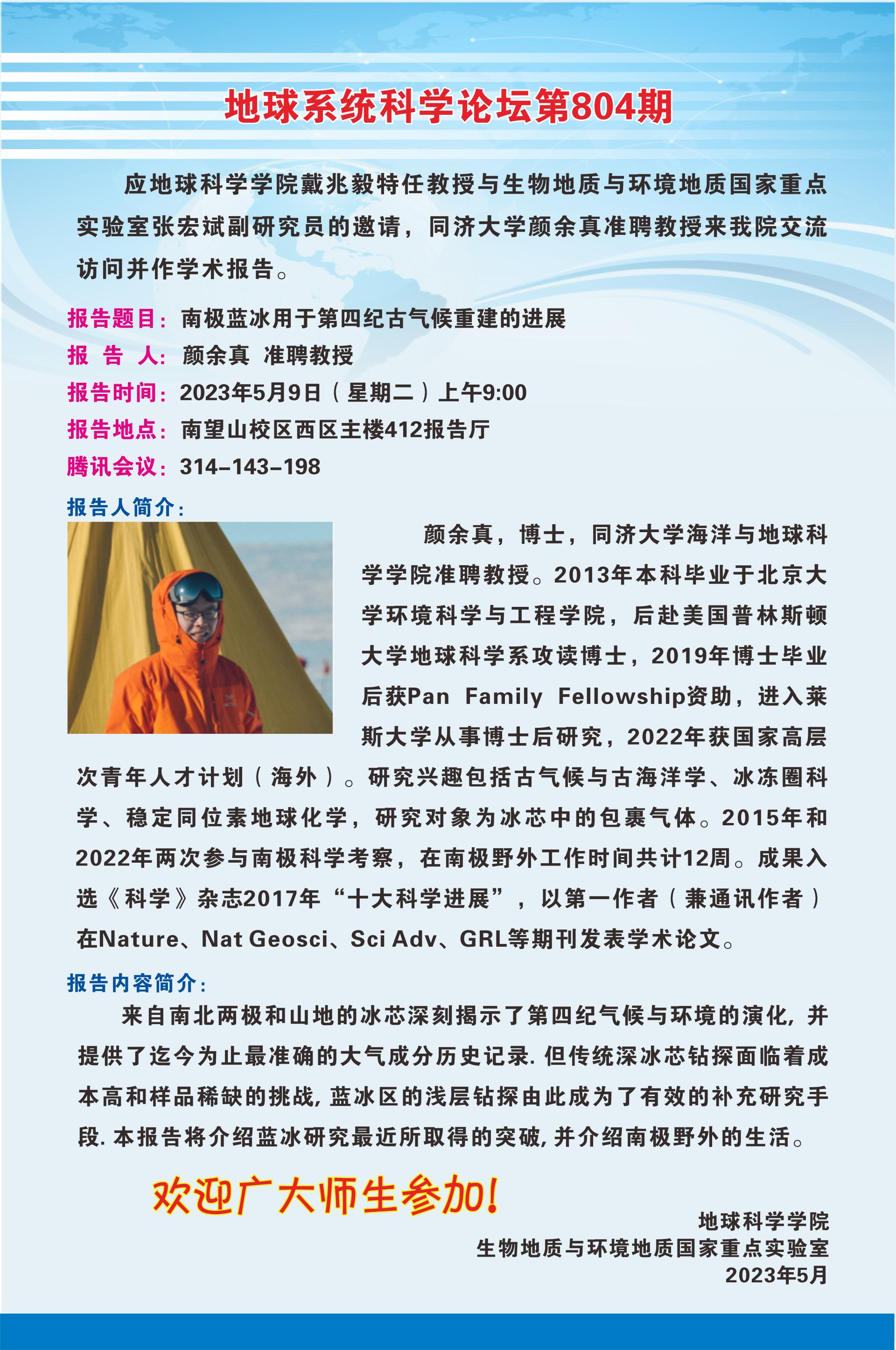 【5月9日】地球系统科学论坛(第804期)-颜余真 准聘教授