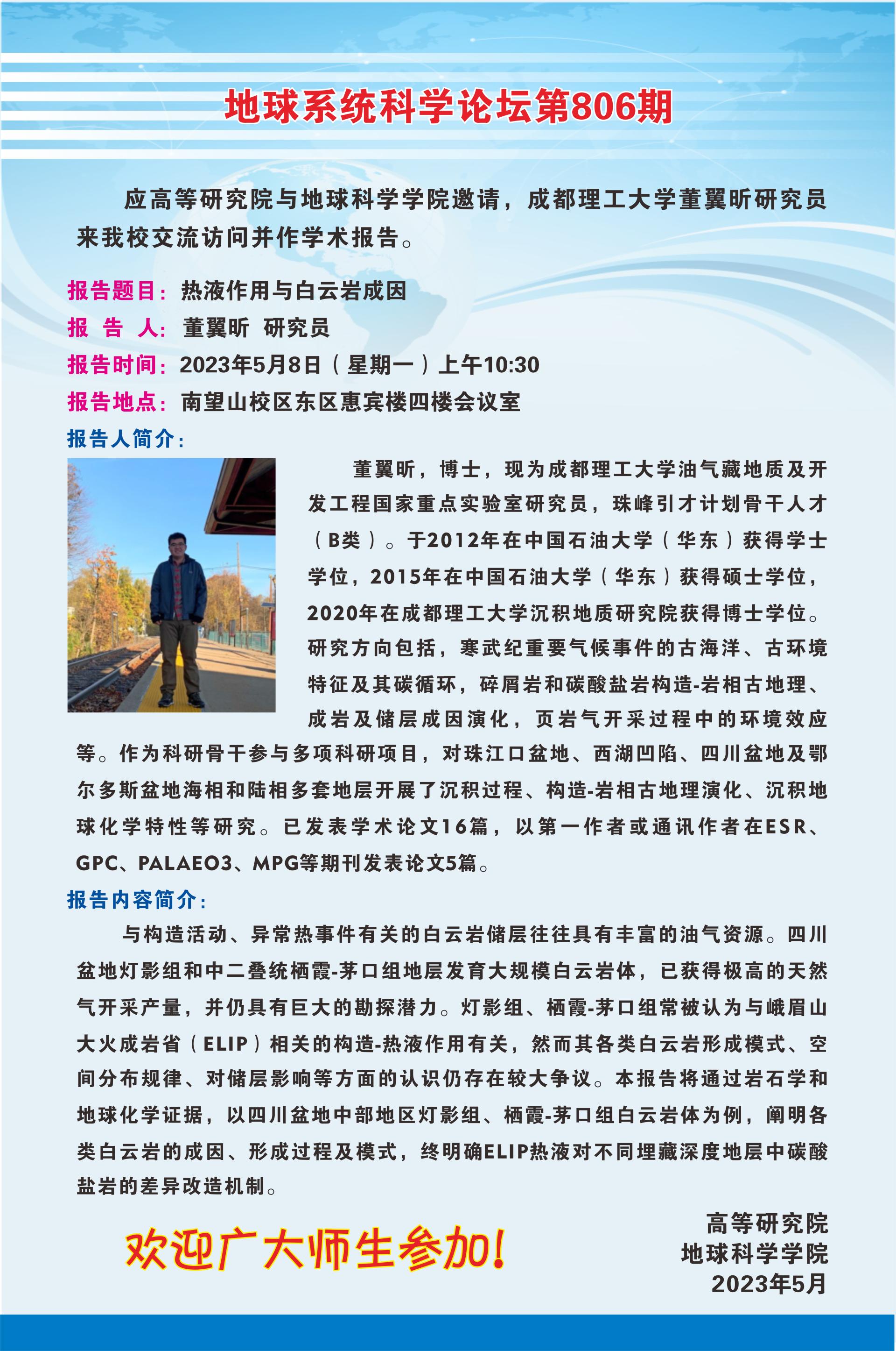 【5月8日】地球系统科学论坛(第806期)-董翼昕 研究员