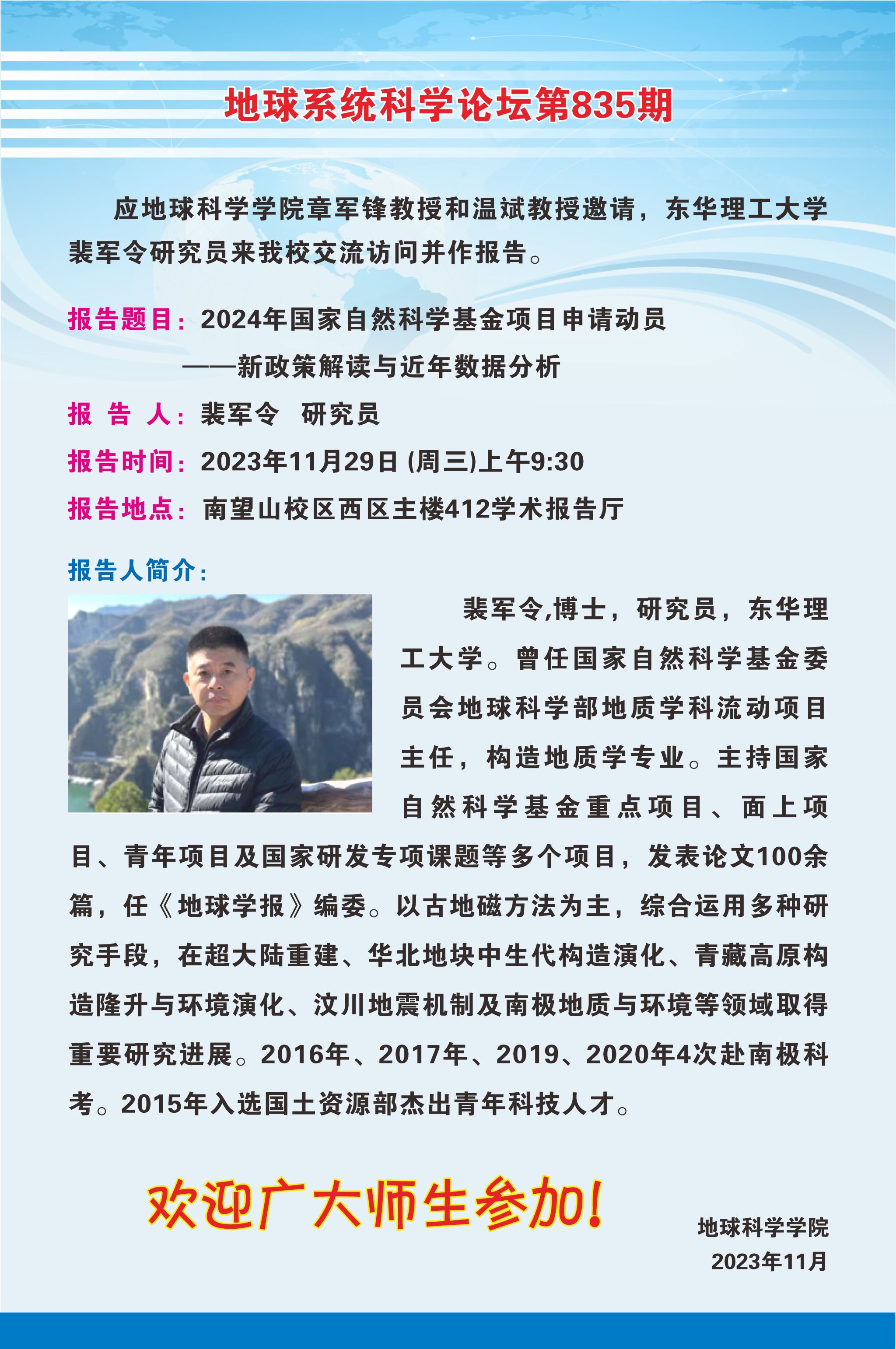【11月29日】地球系统科学论坛(第835期)-裴军令研究员