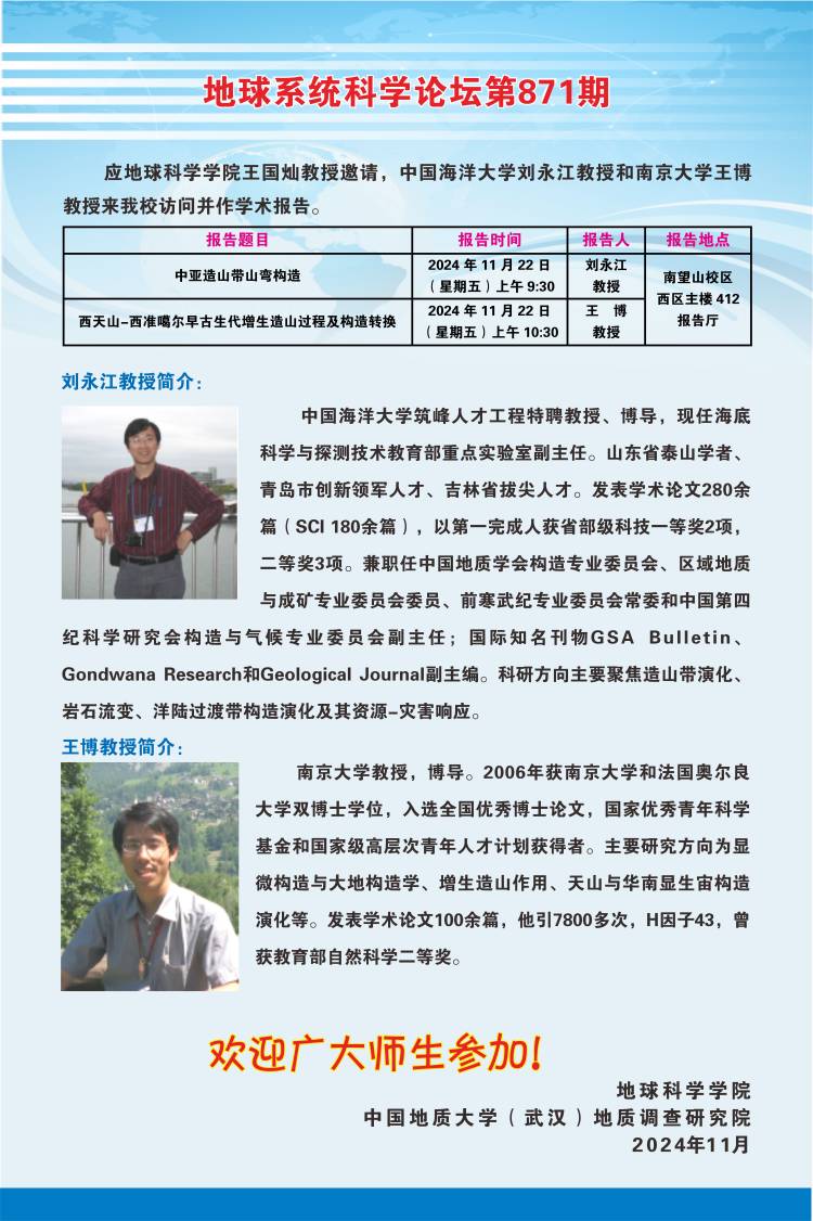 【11月22日】地球系统科学论坛第871期-刘永江教授、王博教授