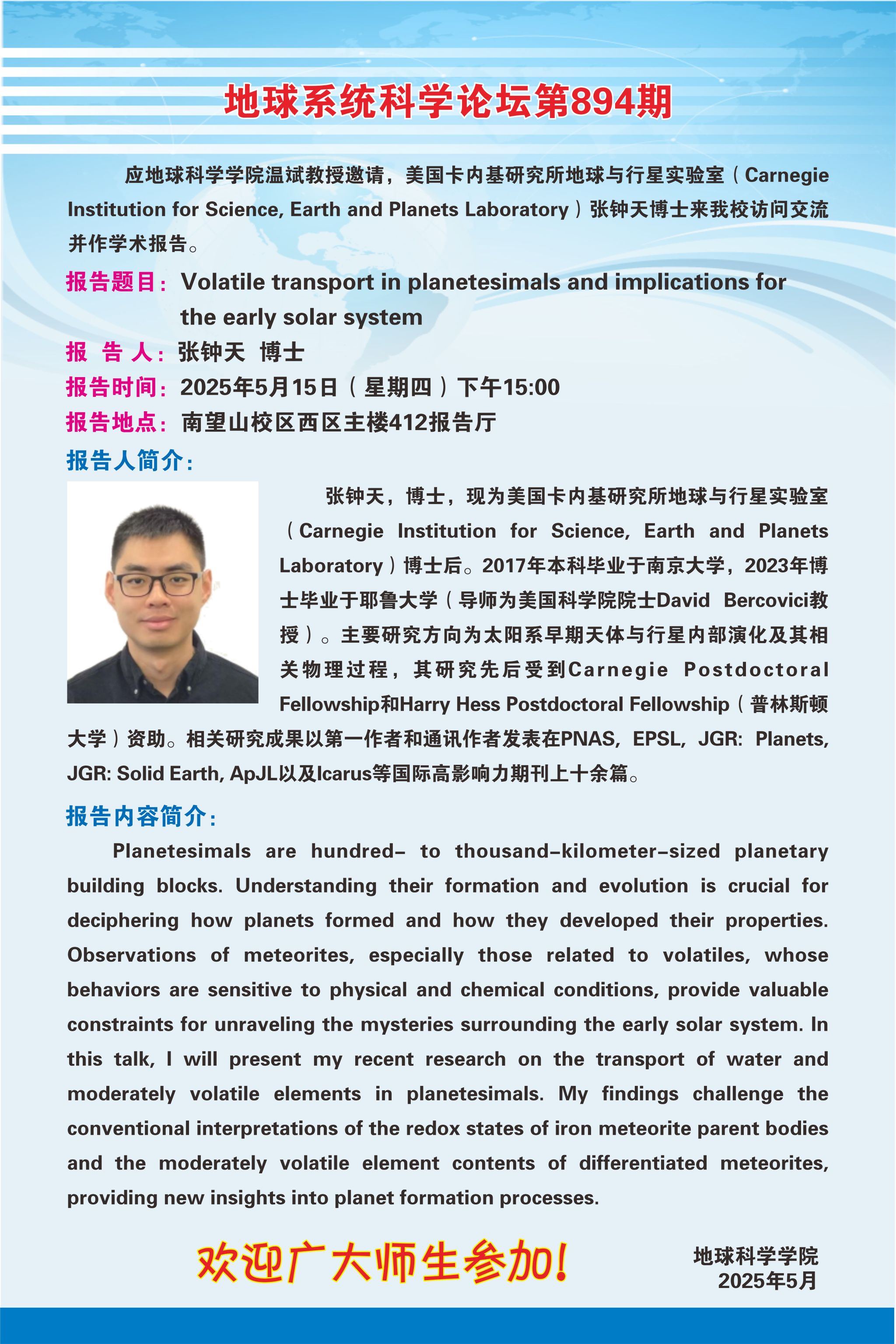 【5月15日】地球系统科学论坛第894期