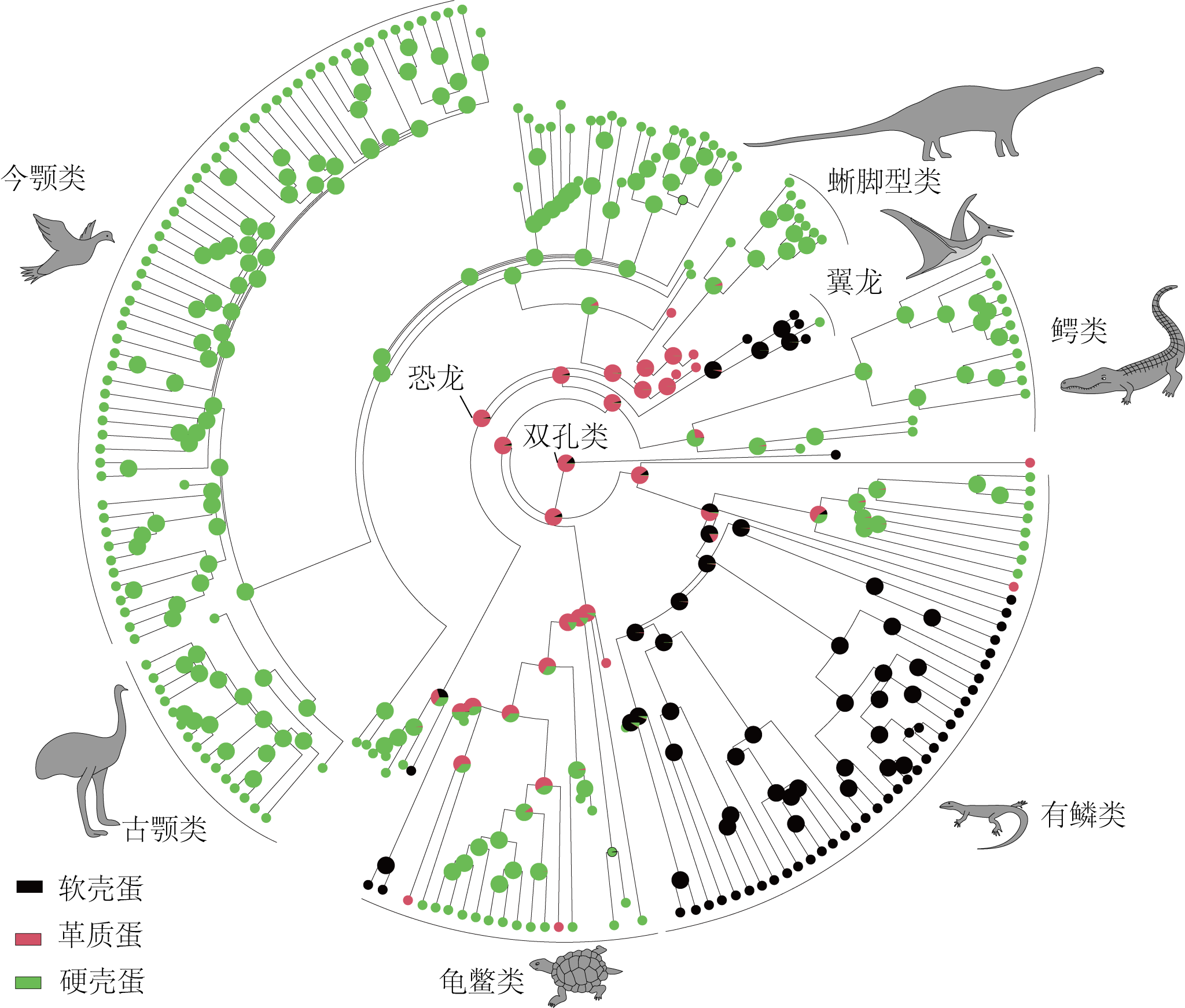 图4 爬行类中蛋壳类型的演化图