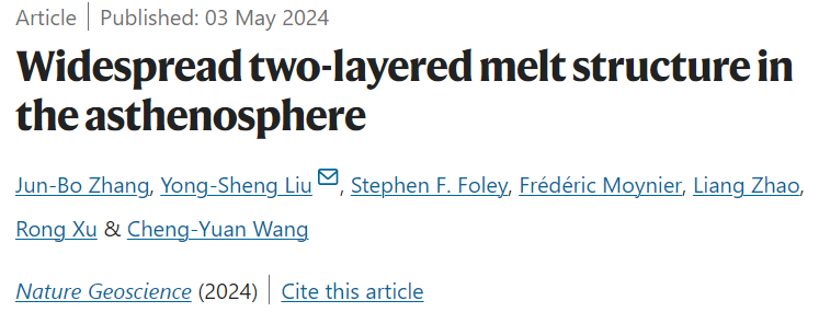 6. Zhang, J. B. et al. Widespread two-layered melt structure in the asthenosphere. Nature Geosci. (2024), doi: 10.1038/s41561-024-01433-1.