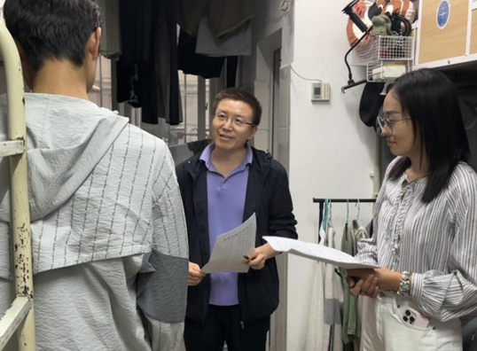 宿舍不仅是学生生活的“第一现场”,更是锤炼品格、涵养责任的“第二课堂”。折叠的被子,整齐的书架,干净的地板不仅创造了整洁的环境,更是自律的象征。老师们与学生亲切交流,耐心叮嘱学生要养成良好生活习惯,打造整洁、舒适的宿舍生活与学习环境。同时,着重强调了电动车安全、消防安全、周日晚点名等,要求学生务必严格遵守,将宿舍安全放在首位。