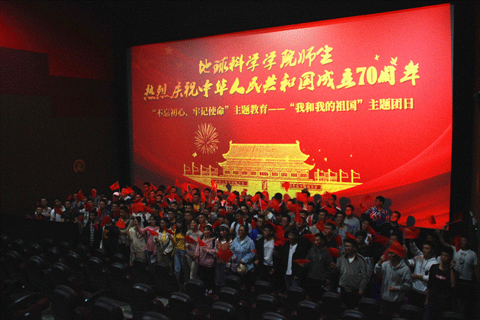 为唤起学生对祖国发展历史的共同记忆,进一步激发,学生的爱国情怀,10月19日下午,我院开展了“不忘初心,牢记使命”主题教育暨“我和我的祖国”主题党团日活动。此次活动将活动现场从校园搬到了影院,大家一同观看影片《我和我的祖国》,回顾新中国70年发展历史,感受祖国沧桑巨变,坚定民族自信心。全院132位学生党员、团员代表参加了此次活动,betway官网 团委滕笑丽老师主持本次主题党团日活动。