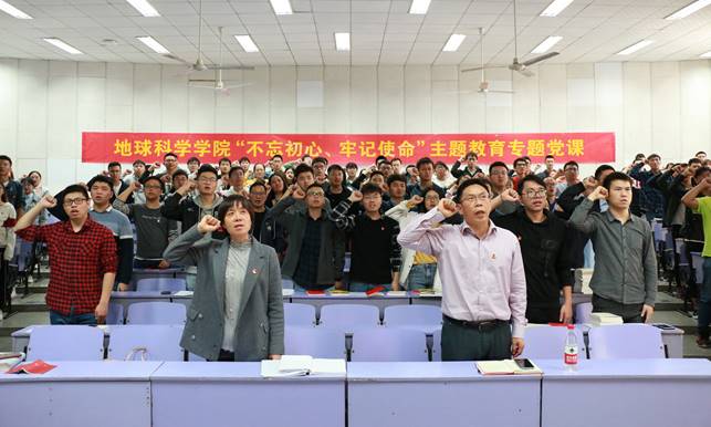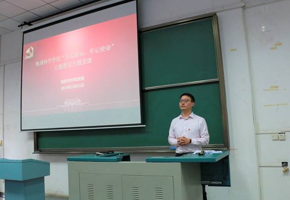 随后,betway官网 党委书记王甫老师和党委副书记张晓红老师分别以“深入推进党支部建设的规范化制度化”和“不忘党员初心使命,力做青春地标典范”为主题,为全体学生党员讲授专题党课。王甫老师从党的初心和使命切入,引导学生党员要以“四条线”为牵引体悟初心使命,以本次“不忘初心、牢记使命”主题教育为契机,抓住“四个机会”,坚定理想信念,强化党员意识。随后他列举了目前党支部建设过程中存在的问题,并进行深度剖析,列出了解决办法,并对全体学生党员提出:坚守入党初心、亮明党员身份、提高政治站位、坚持勤奋学习的四点要求。张晓红老师带领同学们回顾地大发展创业的艰苦奋斗历史,提醒学生党员们要传承老一代地院人的地学初心,同时要发挥党员的先锋模范作用,做到平常时刻看得出、关键时刻站得出、危难时刻豁得出,成为同学们心中的标杆典范。