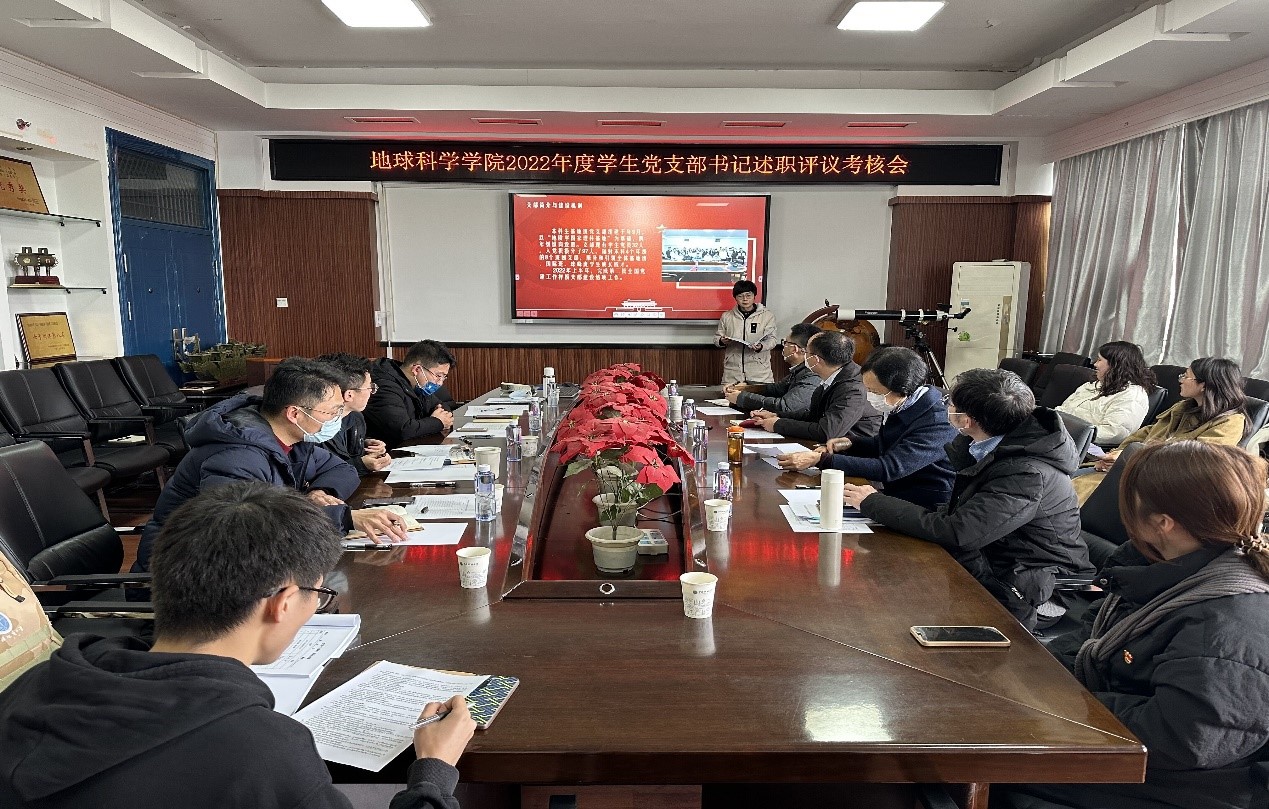 2月17日,betway官网 2022年度学生党支部书记述职评议考核会于主楼412会议室举行。学校专职组织员闫鱼,betway官网 党委书记周刚、副书记赵得爱,地球物质科学系党支部书记王连训,学工组辅导员、全体学生党支部书记参加会议。